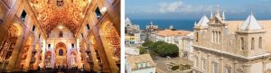 As igrejas são construções maneiristas e traz traços do renascimento em sua passagem para o barroco. São ornamentadas por vezes com azulejos portugueses e altares com esculturas feitas de ouro, como é o caso da Igreja de São Francisco, considerada uma das mais singulares e ricas expressões do barroco brasileiro, com sua faustosa decoração interior.
